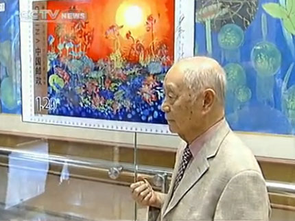 To celebrate the current Global Travel and Tourism Summit in Beijing, a stamp featuring China's most famous lotus painting has been issued. These are the most famous and most expensive lotuses in China. A painting like this could be auctioned for a few million yuan. And soon these midsummer lotus blossoms will tour around the world on stamps... transported by the Travel Summit's members who have come from around the world and will soon take them home.
